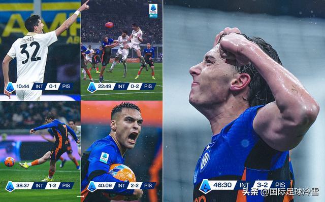 在1-3不敌阿森纳后仅仅3天,国米6-2击败比萨。